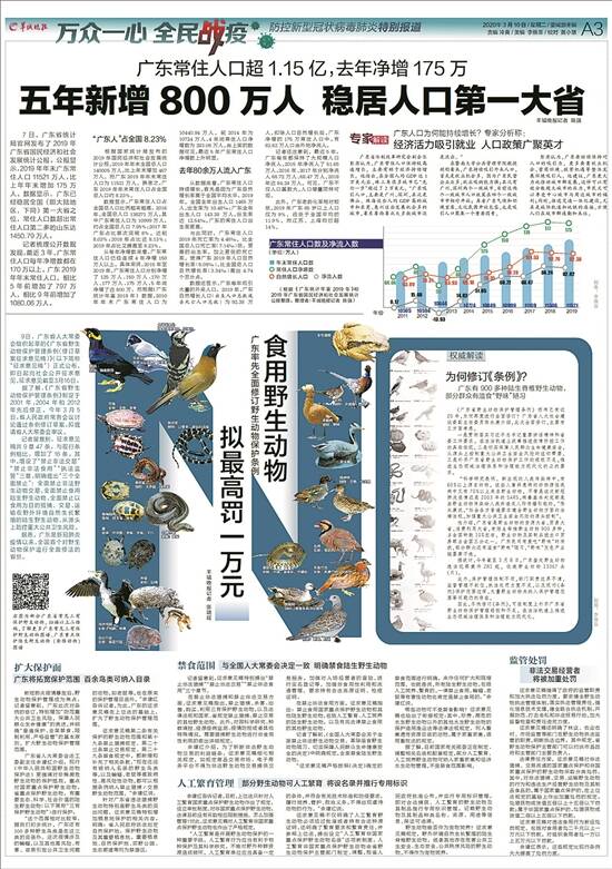 总策划:刘海陵 林海利 总统筹:孙爱群 孙璇 林洁 协调统筹:彭启有 林圳 羊城晚报记者 丰西西 转眼间,已进入2021年广东省两会时间。去年初,一场新冠肺炎疫情打破了平静的生活。这一年,广东在新冠肺炎疫情防控阻击战中所表现出的胆识、担当,所取得的成绩、成效,引人注目。这一年,广东省人大代表的身影出现在了充满危险的抗疫最前线,出现在了积极筹集抗疫物资的现场,出现在复工复产的工厂车间,出现在争分夺秒的科研攻关实验室里…… “人民选我当代表,我当代表为人民”。这一年,他们克服重重困难,主动作为,用实际行动展现新时代人大代表的责任和担当。 疫情防控,关乎每个人的平安,考验着社会运作的每个环节,需要每一个人为之努力。如今,省人大代表们来到省两会现场,带来了他们认真履职、精心调研后得出的建议,积极为广东的疫情防控工作建言献策,让广东更加从容地面对未来的挑战。正如一位省人大代表所言:“我是人大代表,面对疫情的严峻形势,责无旁贷。” 医卫代表奋战一线争当先锋 去年1月19日,国家卫生健康委确认广东首例新冠肺炎确诊病例。在此之前,武汉发生的疫情时刻牵动着省人大代表、广州市第一人民医院院长曹杰的心,这样的敏感来源于“非典”的历练。 当年抗击“非典”时,广州市第一人民医院是广州市的定点医院之一。“‘非典’积累的经验,让我们时刻绷紧公共卫生事件这根弦,才会在应对任何突发疫情时胸有成竹。”去年1月17日,在曹杰的带领下,医院从各科室抽调人员,立即组建完成院内“发热门诊”,随时做好迎战的准备。 两天后,广东抗疫时间正式开启,广州市第一人民医院作为广州市新冠肺炎定点收治医院,尽职尽责做好疫情防控和医疗救治工作。广州市第一人民医院成功筛查出了全市第一例没有“典型”症状的新冠肺炎患者,发现了全市首例新冠病毒无症状感染者,去年完成核酸检测25万例,为广州市及时预警和诊断新冠肺炎患者提供了宝贵的第一手资料,守护了广州百姓的生命安全。 和曹杰一样,本身作为医卫人员奋战在抗疫一线的省人大代表、广州市妇女儿童医疗中心党委书记夏慧敏,在疫情发生后,带领全院医务人员迎难而上,顺利完成了各项任务。 广州市妇女儿童医疗中心是广东省、广州市的新冠肺炎定点收治医院,同时也是广州市儿童患者唯一收治单位。去年2月20日,世界卫生组织专家团队到医院考察新冠肺炎疫情中儿童患者的筛查诊治情况时,对其筛查收治及隔治疗效果给予了高度评价。2月29日,广州市妇儿中心的研究成果被写入《中国—世界卫生组织新型冠状病毒肺炎(COVID-19)联合考察报告》。3月13日,夏慧敏团队在国际知名期刊《Nature Medicine》发表题为《新冠病毒感染患儿流行病学和临床特征分析及肠道持续排毒的证据探索》的研究论文,为儿童感染新冠病毒的临床诊治提供了重要参考,为儿童病例的确诊、治疗及康复观察提供了新的思路和方向。该研究数据在线上发表时,同步向世界卫生组织汇报分享。 疫情发生后,广东省人大代表、云浮市人民医院院长苏全喜带领全院医务工作者全力以赴投身到工作中。去年除夕夜,苏全喜连夜在医院布置相关工作,一夜未睡,大年初一清晨又检查医院疫情防控重点科室和防控流程,从增设预检分诊岗位到物资储备再到发热病人行走路径等,他都仔仔细细进行检查并优化部署。整个春节假期,他未曾休息过一天。在他的带领下,医院把每一项工作、每一个环节都做到严格、精准,用实践行动践行医务工作者的责任和担当。 在疫情防控最为紧要的关头,省人大代表、省结核病控制中心主任周琳两次写下“请战书”,主动请缨援助湖北。作为广东援助湖北荆州医疗队前方指挥部副总指挥、临时党委副书记,她不畏艰辛,日夜奋战,迎难而上攻克疫情防控重点难点问题,为广东医疗队圆满完成支援湖北抗疫工作作出了积极贡献。 基层代表坚守岗位尽显本领 除了医卫一线的人大代表,全省各条战线上的人大代表在疫情发生后都竭尽所能,全力战疫。 去年1月29日,省人大常委会发出了《致广东省人大代表的一封信》,向人大代表提出“带头提高政治站位、带头落实联防联控、带头做好科学防疫、带头进行正确引导”的倡议。很快,各级人大代表纷纷投身到疫情防控阻击战中。 省人大常委会以最快速度作出依法防疫切实保障人民生命安全的决定——修订野生动物保护管理条例。去年3月31日,广东省十三届人大常委会第十九次会议表决通过新修订的《广东省野生动物保护管理条例》,率先将“全面禁食野生动物”明确写入地方性法规;第一时间组织开展疫情防控法律法规汇编和解读工作,推动有关法律法规的具体规定在广东得到有效遵守和贯彻执行;同时制定强化公共卫生法制保障立法修法专项计划、检查野生动物保护法、爱国卫生工作条例等法律法规实施情况等,对医疗废物处置存在的问题进行调研等等。 广东是经济大省、人口大省、开放大省,流动人口多,疫情防控工作难度大,压力大。工作在基层一线的代表,立足工作岗位,认真履行自身职责,率先参加到本单位疫情防控和应急响应保障工作中。 为了解系内1300多名师生的情况,省人大代表、中山市技师学院机电系主任胡旭兰通过微信、电话等方式逐个确认,并组织教研组群开展线上教学讨论,积