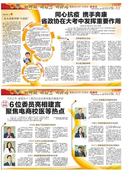 ●省政协共组织2次常委会专题议政、45项协商活动、64次调研视察 ●18条建议被吸纳到广东省构筑公共卫生体系实施意见等文件中 ●针对“双区”建设在做好“双统筹”中的牵引作用、疫情对企业发展