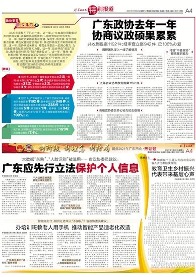 羊城晚报记者 薛江华 通讯员 周艳春 2020年是极不平凡的一年。这一年,广东省政协用勤勉尽责的协商议政,坚毅地挑起围绕中心、服务大局的担当作为。 这一年,省政协紧跟省委战疫情
