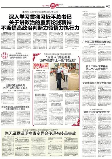 2021年1月27日/星期三/ 要闻部主编/责编 赵鹏 苏碧青 / 美编 丘淑斐/ 校对 潘丽玲