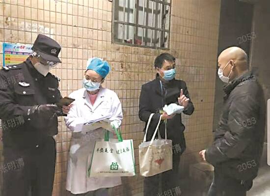 居委、医生、民警三人小组核查重点人员(右二为张明清) |