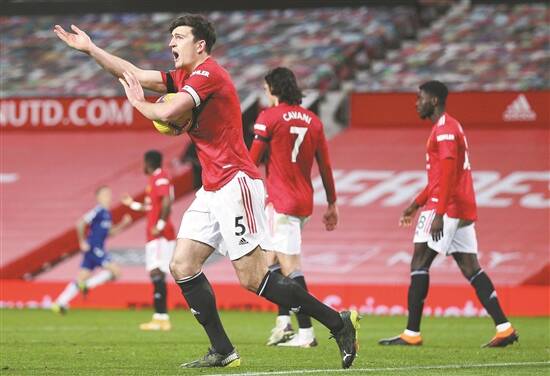 曼联队长马奎尔示意对方犯规 图/视觉中国 |