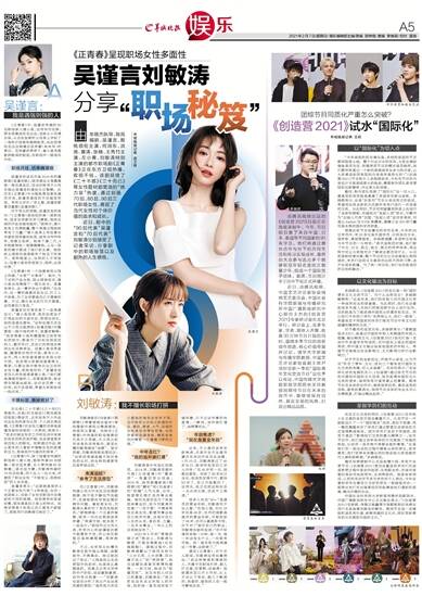 羊城晚报记者 龚卫锋 由牟晓杰执导,陈岚编剧,吴谨言、殷桃领衔主演,何润东、洪尧、章涛、张楠、王秀竹主演,左小青、刘敏涛特别主演的都市职场剧《正青春》正在东方卫视热播,收视不俗。该剧延续了《二十不惑》《三十而已》等女性题材剧营造的“她力量”热度,通过刻画70后、80后、90后三代职场女性,展现了当代女性对个体价值的追求和成长。 近日,剧中的“90后代表”吴谨言和“70后代表”刘敏涛分别接受了记者采访,分享剧中的职场秘笈以及剧外的人生感悟。 A 吴谨言:我是遇强则强的人 《正青春》中,吴谨言饰演的90后职场新人章小鱼,没有学历优势,原本很难进知名企业,但她从小耳濡目染,从当批发商的父母身上学到了一身砍价技能和推销秘笈,由此获得知名企业销售总监林睿(殷桃饰)的赏识。在林睿的带领下,章小鱼凭借敢拼敢闯的韧劲,在职场中一路闯关升级。 职场开挂,仿佛魏璎珞 吴谨言的成名作是2018年的爆款剧《延禧攻略》,她凭借女主角魏璎珞一角迅速走红,但当时就有不少网友指出吴谨言的演技太过稚嫩。此次在《正青春》中与殷桃等戏骨级演员对戏,吴谨言演技的不足越发明显。有观众评价:“怎么看,吴谨言都像在重复《延禧攻略》。” 对于观众的质疑,吴谨言坦然面对:“《正青春》是我拍的第一部职场戏,很多东西都在学习摸索,相信后面的作品会越来越好。”她表示,章小鱼身上充满能量,整个表演过程给她带来了力量:“章小鱼身上有些看似矛盾却很有趣的标签,她有点咋咋呼呼,很傻又很拼。她是个富二代,8岁就跟爸妈一起摆摊赚钱,义乌一条街的铺子都成了她们家生意。她刚到上海就在淮海路有了她名下的房产。某种程度上,这样的人不用奋斗,但章小鱼依然很努力、很拼,这很可贵。” 《正青春》有一个场景被观众骂上热搜,“太假”“太悬浮”。剧中,为了证明产品合格,阻止顾客投诉,章小鱼当场喝掉了一瓶化妆水。吴谨言表示,这一幕并非出于虚构:“生活中,这一幕的确真实发生过,打工人不容易,为了生存要做自己不愿意的事。不过,喝化妆水的行为不提倡,会伤害自己身体。” 吴谨言还对角色做了一些表演设计:“章小鱼很虎,角色经常处于打鸡血似的亢奋状态,即便台词长,我的语速也要快。”这种处理方式也让不少观众联想到《延禧攻略》中魏璎珞一路开挂的样子,吴谨言解释:“我觉得章小鱼和魏璎珞之间有相似的地方,都是为了目标会很坚定的人,雷厉风行,在自己的领域足够突出也足够幸运。但章小鱼非常直接,魏璎珞则相对内敛,更有心计。此外,两人的家庭背景也有很大的不同。我觉得大家都很爱看爽文、爽剧,只要这其中能传达出正向的女性力量,那就是好的。”吴谨言坦言自己的性格更像章小鱼:“我们都是遇强则强的人,在哪里跌倒,就会想在哪里站起来,也许会花费一些时间,但不会退缩,希望大家能给我一些时间。” 不惧标签,撕掉就好了 无论是《二十不惑》《三十而已》等剧作,还是《听见她说》《乘风破浪的姐姐》等综艺,近年来有不少作品关注女性的身份认同、个人成长等话题。《正青春》对女性力量的关照是吴谨言接拍该剧的一大原因,她表示:“很多时候女性在工作和生活中容易自我低估和自我怀疑,也会承受更多来自他人的眼光。如果通过作品,能让更多的人看到并理解女性的困境和压力,那是我作为演员的荣幸。” 《正青春》中,除了吴谨言饰演的职场新人章小鱼,殷桃饰演80后销售一部总监林睿,左小青饰演80后销售二部总监方静,刘敏涛饰演的70后总经理,四个女人一台大戏,并展现了职业女性 “不被定义、拒绝标签”的人生态度。 吴谨言表示:“这部剧里面的4个主要女性代表了4种类型,也在一定层面上,反映了女性在职场中会遇到的不同的困境。我觉得有标签是好事,那毕竟是自己身上的特点。如果觉得某个标签让自己感觉不舒服了,那就用行动撕掉它就好了。” B 刘敏涛:我不擅长职场打拼 刘敏涛曾在《伪装者》《琅琊榜》《带着爸爸去留学》等热播剧中展现过精湛演技,深受观众喜爱。但她在《正青春》中饰演的职场高管却引来不少质疑,不少观众批评该角色浮夸做作,甚至吐槽刘敏涛演技“油腻”。面对质疑,刘敏涛选择坦荡回应:“这样的表演是基于我对角色的认识,我也特别感谢有反面声音出现。” 表演油腻?“参考了生活原型” 在《正青春》中,刘敏涛饰演公司大中华区总经理舒婉婷,她不急不躁但气场威严,总能轻描淡写地处理好棘手问题。拿到剧本后,刘敏涛认真研究了角色性格底色:“舒婉婷是一个正直的高管,她用一切办法栽培徒弟林睿。”表演方面,她也做了一些设计:“她经历过大风大浪,所有内心的波澜起伏都不能喜形于色,所以我在剧里总是眯着眼睛,笑眯眯的。” 不过,也有观众吐槽刘敏涛在剧中摇头晃脑、油腻做作、不够真实。她正面回应了争议:“人物是我从生活原型中找到的,也是我认真塑造的。我真见过有点浮夸的中产阶级,说话拿腔拿调,动作有点刻意……”刘敏涛也尝试分析了观众产生这类观感的原因:“虽然我力求自己塑造的角色会有所不同,但可能观众对我之前演的朴实、善良、厚道、大气、坚韧的女性角色有惯性思维,当突然看到我演老板、精英类角色时需要一个慢慢习惯的过程。” 中年走红?“我的油井被打通” 刘敏涛是中年走红的