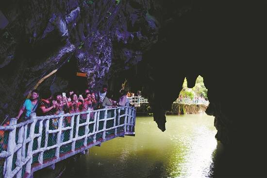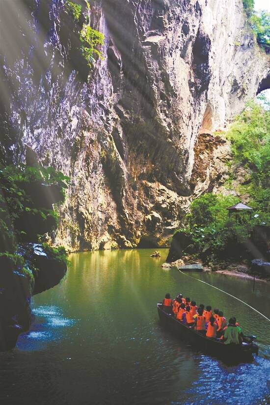 在华南第一天坑里乘船游地下河 |