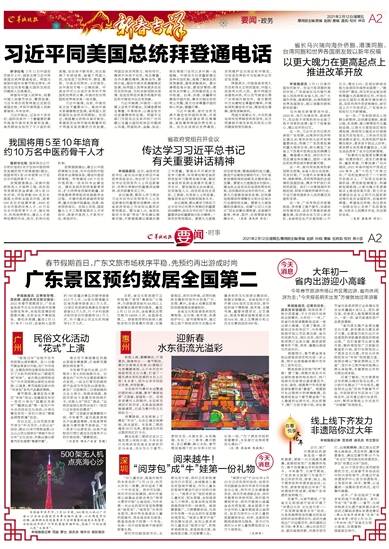 2021年2月12日/星期五/要闻部主编/责编 赵鹏 孙焰/ 美编 伍岩龙/ 校对 黄小慧