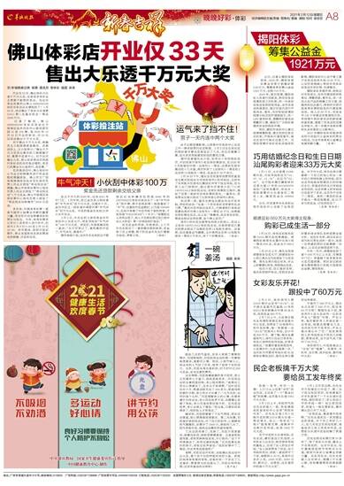 近日,记者从揭阳体彩获悉,2020年,揭阳体育彩票全年累计销售彩票2.49亿元,筹集体育彩票公益金1921万元,创税719万元。 2020年,面对疫情,揭阳体彩人迅速行动起来,制定实体店疫情防