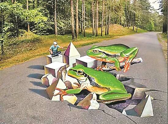 绘画大师早已不满足于只在画廊里画3D画了。可能某天你走在大街上,就会有一场令人惊喜的奇妙遭遇——街头的裸眼3D涂鸦,可能会令你分不清现实真假。 比如这位艺术家Carlos Alberto GH,就将自己的大手笔创作画在了街头,引得人们纷纷驻足观看。 艺术就这样在共享中延伸了创作的快乐。 (文/爱研 图/资料图片)
