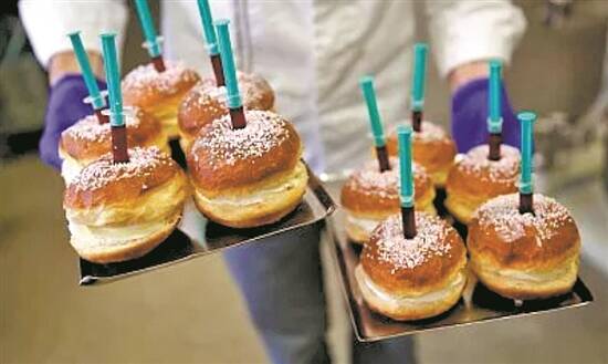 瑞士一家烘焙店早前推出一款树莓馅与百利甜酒馅的德式甜甜圈,最吸引顾客的,是它可以让顾客自己注射“甜心”——想吃多糖还是少糖,你可以自己看着办。