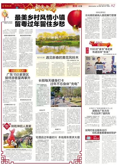 羊城晚报讯 记者黄宙辉、黎存根,通讯员粤文旅宣报道:春节假期第四日(大年初三),更多广东人趁着假期出外游玩。记者从广东省文化和旅游厅获悉,据初步测算,截至2月14日14时,广东纳入监测的150家