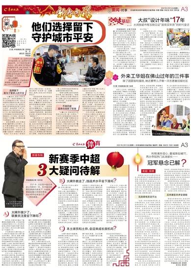 文/图 羊城晚报记者 梁怿韬 刘云 通讯员 施桂鸿 李玺迪 中国新年,有人选择长途跋涉回家团圆,有人选择留守当地就地过年。为了欢度祥和春节,有这么一群人默默守护着城市