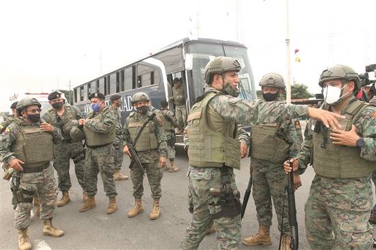 2月23日,士兵在厄瓜多尔瓜亚基尔发生暴乱的监狱附近警戒 新华社发 |