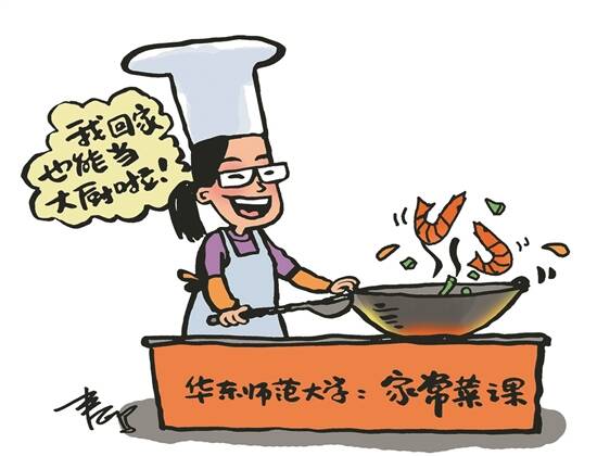 文/杨朝清 图/春鸣 新学期到来,华东师范大学开出了新课《家常菜》。教学内容显示,家常菜青椒土豆丝、海派菜八宝辣酱、粤菜菠萝咕噜肉、川菜干烧大虾,还有中式面食、西式点心的烹制都囊括在内。《家常菜》依托学校后勤部门开设,共18学时,面向2020级本科师范生和强基计划学生开放。(2月24日《新民晚报》) 在过去,高校通常缺乏劳动教育课程,一些学校虽然开设了劳动课程,但常常纸上谈兵、形同虚设,导致部分大学生不仅不热爱劳动,甚至鄙视劳动,更缺乏自我劳动的习惯和意识。一些大学生 “一屋不扫”,甚至还有少数大学生将脏衣服快递回家,妈妈洗好晒干再快递回学校。 开设《家常菜》课,不仅是为了回应教育评价改革的要求,也是为了促进学生的全面发展。对于喜欢吃、讲究吃的中国人来说,大都不缺乏对美食的热情;通过学习《家常菜》这门课程,学生们不仅能够提升厨艺,还会提升对劳动的认识和对劳动者的尊重、体恤与社会认同。 另外,烧菜做饭作为一种生活技能,不仅能够让自己吃得更好,也能够成为一技之长,成为婚恋、职场等场域的“比较优势”。掌握制作家常菜的生活技能可以受益一生,彰显了劳动教育持续性原则;正是因为接地气,《家常菜》课程受到了大学生的追捧。 据悉,在《家常菜》这门课期末考核的时候,学校食堂会开出专门窗口,学生做出来的家常菜,将供师生们品鉴。既能学习实用技能,又能“活学活用”去赢得点赞与好评,这样的劳动教育,生动鲜活、有趣有范,值得推广。