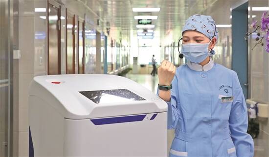 智慧病房的机器人可自动导航到患者病床,为患者派发药物等 |
