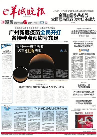 1957年10月1日创刊 2021年3月27日 星期六 辛丑年二月十五 责编/赵鹏 美编/黄国栋 校对/杜文杰 报料热线:(020)114转羊城晚报报料、