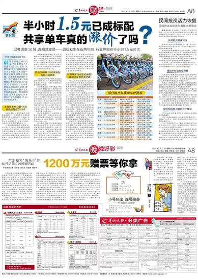 文/图 羊城晚报记者 沈钊 “单车价格超越公交车”“共享单车1小时要6.5元”……近日,共享单车“涨价”的有关报道引发了热议,相关话题一度冲上各大网络平台热搜。共享单车真的涨价了吗?为