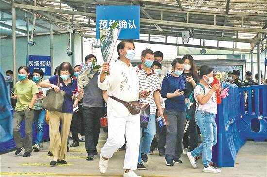 市民通过预约通道进入广州火葬场拜祭 羊城晚报记者 梁喻 实习生 单宇 摄