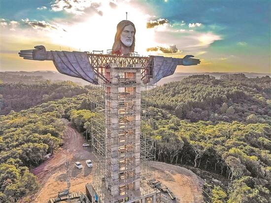 当地时间4月9日,巴西南里奥格兰德州,一座新的基督雕像正在建造中。建成后的雕像将比里约热内卢的基督救世主雕像更大,成为世界第三大雕像。 图/视觉中国