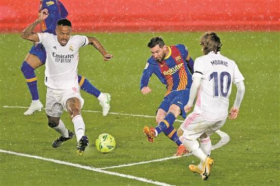 西甲第30轮今晨上演西班牙国家德比,皇家马德里主场以2比1击败巴塞罗那,自从1978年之后首次取得对巴萨的西甲三连胜。在积分榜上,皇马和少赛一轮的马德里竞技同积66分,皇马凭借对马竞1胜1平的直接交锋优势占据榜首,巴萨以65分排名第三。 残阵抢先手 此役在战术布置上,皇马主帅齐达内比巴萨主帅科曼更胜一筹。皇马把球权交给巴萨,在主场安心打起防守反击,两支球队的控球率基本是三七开。齐达内在首发阵容撤掉边锋阿森西奥,代之以跑动能力更强的中场大将巴尔韦德,他和右后卫巴斯克斯联手限制住西班牙国家队原装左路进攻组合阿尔巴和佩德里。 齐达内的布置很成功,球员们的执行力也很到位。皇马两名主力中卫拉莫斯和瓦拉内都无法出场,两名替补中卫纳乔和米利唐却连续两场发挥出高水准,在欧冠1/4决赛首回合顶住利物浦强大攻击群带来的压力,今晨在西班牙国家德比经受住考验。 皇马在第13分钟打出精彩快攻,巴尔韦德带球强势突破之后分球到右路,巴斯克斯传中,队长本泽马用潇洒的脚跟射门打破僵局。巴尔韦德成了巴萨克星,在双方本赛季首次交锋就曾首开记录,帮助皇马在客场以3比1击败巴萨,皇马今晨这个进球也有他的一半功劳。 巴西边锋维尼修斯在对利物浦的比赛攻入两球,今晨虽然没有进球,但在左路突破仍旧犀利,给巴萨右中卫明格萨带来很多麻烦。第28分钟,维尼修斯强行突破赢得禁区前的直接任意球机会,克罗斯主罚打在巴萨边翼卫德斯特后背上折射入网。 梅西难进球 巴萨在下半场状态回勇,但是雨越下越大,影响了巴萨在进攻端的效率。超级巨星梅西今晨表现并不理想,到了临近终场时,这位巴萨队长还被拍到在冷雨中瑟瑟发抖的画面,似乎越来越游离于比赛之外。 梅西是西班牙国家德比进球之王,总共取得26个进球,排在国家德比历史射手榜第一位。可是一个明显的标志是,自从“一生之敌”C罗2018年夏天转会离开皇马之后,梅西在国家德比就再也没有进球,连助攻也没有。梅西在最近三个赛季的国家德比出场7次,包括5场西甲和两场西班牙国王杯,他上场时间达到567分钟,交出0进球和0助攻的成绩单。梅西的上一个国家德比进球,还停留在2018年5月6日,也就是2017-2018赛季西甲第36轮。 巴萨今晨在第60分钟扳回一球,左后卫阿尔巴传中,替补出场的格列兹曼机敏地将球漏过,中卫明格萨凌空射门入网。虽然比赛时间还剩半个小时,巴萨却无力扳平比分。巴萨此前在西甲取得16胜3平,19轮不败被老对手皇马终结。 羊城晚报记者 刘毅