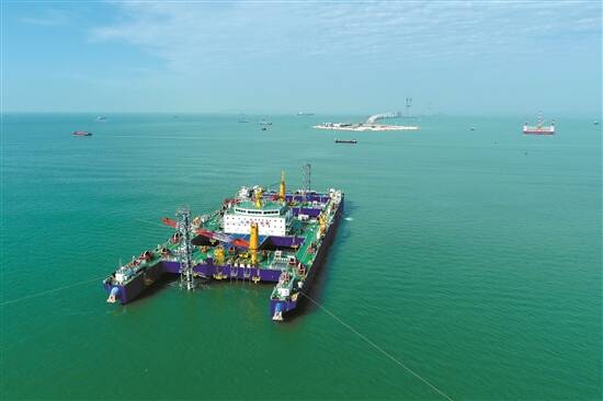 21日下午,深中通道海底沉管隧道E9管节浮运安装对接 卢志华 摄 |
