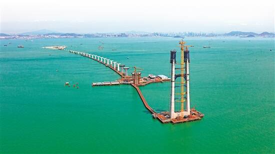 深中通道伶仃洋大桥东主塔及东锚碇施工现场 张珂 摄 |