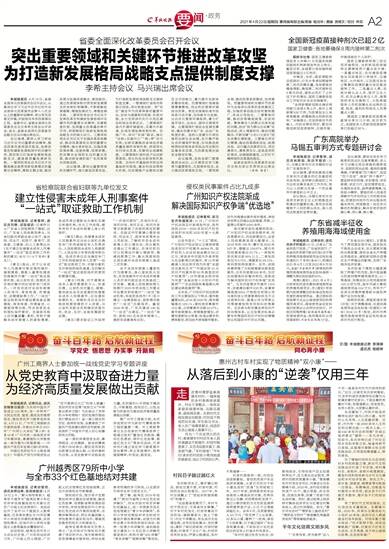 羊城晚报讯 4月19日,省委全面深化改革委员会召开会议,认真传达学习习近平总书记在中央全面深化改革委员会第十八次会议上的重要讲话精神,审议有关改革文件稿,听取相关专项改革情况汇报。省委书记、省委全