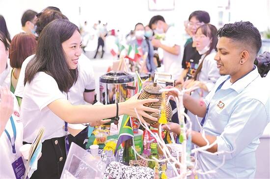 首设国际人才街区展位 羊城晚报记者 王磊 摄 |