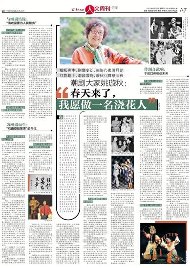 潮剧大家姚璇秋:“春天来了,我愿做一名浇花人”