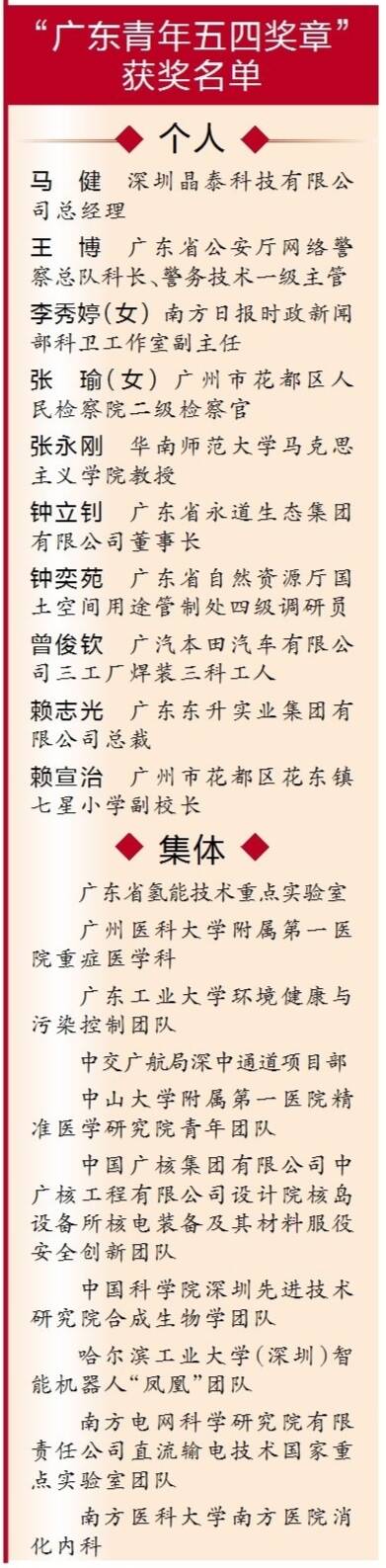 羊城晚报记者 鄢敏 通讯员 岳青 百年风华茂,世纪正青春。5月6日,“赓续精神血脉,传承红色基因”——广东青少年喜迎中国共产党成立100周年展演暨党史学习教育宣讲活动在广州举行。现场,共青团广东省委员会、广东省青年联合会表彰了第二十三届“广东青年五四奖章”获得者。钟南山院士通过视频勉励党员先锋队伍,在党和人民最需要的地方绽放青春。 钟南山勉励党员先锋队伍 “国家的希望在青年,民族的未来在青年。”广东省党员先锋青少年宣讲团荣誉团长钟南山通过视频勉励省市两级22支党员先锋队伍,赓续精神血脉,传承红色基因,让青春在党和人民最需要的地方绽放。 钟南山提到,建党百年来,在广东这片热土上,一代又一代青年建功立业。党员先锋队伍要持续深化宣讲行动,到学校、乡村、社区、企业、新兴青年聚集地,分享党员奉献故事、交流成长体会,引导青少年看齐榜样、学习先进、跟党奋斗。 现场,彭湃烈士孙女、第十一届广东省政协委员彭伊娜与少先队员王音茗对话,讲述我国“农民运动大王”彭湃烈士、“中国核潜艇之父”彭士禄院士的故事。“我们共产党人,从来不计失败,不畏困难,失败了再干,跌倒爬起来,革命总有一天会成功。”当彭伊娜再次念出彭湃这句铿锵有力的名言时,现场的青年学生无不为之动容。 三位粤港澳青年代表现场分享了在湾区工作、创业的经历和感受。“粤港澳大湾区赋予我们青年人公平的筑梦机会和成长空间。”香港青年代表罗伟特希望,广大青年一起用青春点亮大湾区这颗了不起的明珠。 作为一名青年企业家,澳门青年代表冯文滔表示,在湾区奋斗创业,看到了巨大的发展潜力,将尽全力为澳门、为祖国创造价值。 “创汇谷”粤港澳青年文创社区青年家园项目负责人赖婉仪表示,他们一直在努力帮助三地青年融入湾区发展,建设活力、青春的大湾区。据介绍,“创汇谷”项目是“大湾区青年家园”中的一站。目前,全省已建成38家青年家园,为在粤的港澳青年提供服务,帮助他们解决学习、工作、生活方面的困难。 “勇敢的雨燕”讲述创业感悟 当天,共青团广东省委员会、广东省青年联合会为第二十五届“中国青年五四奖章”获奖者张莹莹颁奖,并为马健等10位获奖个人、广东省氢能技术重点实验室等10个获奖集体,颁授第二十三届“广东青年五四奖章”。 作为广东唯一的“中国青年五四奖章”获得者,张莹莹表示倍感荣幸,同时也感受到肩上的责任。“在未来发展道路上,要踏踏实实走好每一步”。张莹莹希望,她的获奖能增强残障人士的信心,使更多残障人士积极融入社会发展中。 因创建深圳雨燕残疾人关爱事业发展中心,张莹莹被称为“勇敢的雨燕”。她解释,雨燕是飞得很快的一种鸟,想通过“雨燕”这个名字鼓励残障人士在事业和生活中飞得更高更远。 2011年,张莹莹从湖南来到深圳工作。“这是一个温暖的城市,不仅天气温暖,城市的关怀也让我感觉温暖。”她表示,致力于助残就业创业帮扶事业以来,她带领团队创办4家社会组织、2家企业,在岗员工90%以上都是残障人士或残障儿童家属,累计帮助2700多名残障人士成功就业。 展望未来,张莹莹希望通过不断的实践,形成可复制、推广的模式,帮助更多残障人士就业创业。 “高学历”青年唱出科研心声 “我还是从前那个少年,初心从未有改变,百年只不过是考验,美好生活目标不断实现。”激昂动情的歌声从宣讲活动的舞台上传来,音乐情景剧、街舞、合唱等各种形式的节目轮番上演,警察、快递小哥、医护工作者等社会各界青年参与其中。 当天,有一个歌舞节目《破浪》比较特别,表演者是一群高学历的研究人员,他们来自中科院深圳先进院合成生物学研究所。据该节目的策划人陈茜介绍,为迎接建党百年,他们特意改编了《破浪》这首歌。“除了加入科研元素,还把我们工作生活的城市——深圳写了进去。”陈茜说。 据介绍,今年获得“广东青年五四奖章”的中国科学院深圳先进技术研究院合成生物学团队,于2017年12月成立,已成为一支多学科交叉汇聚的、以青年海归为主的创新团队。去年4月,团队牵头建设的深圳市工程生物产业创新中心落户光明科学城,打造国内首个楼上楼下创新创业综合体,极大解决初创企业缺乏设施和技术平台的瓶颈,缩短原始创新产业转化的时间周期。