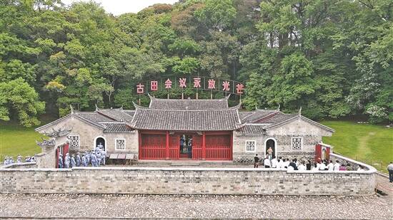 古田会议会址游人如织 羊城晚报记者 张豪 摄 |