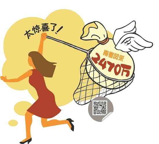 羊城晚报记者 张爱丽 通讯员 郭新庆 插图 采采 家在越秀区的赵女士(化名)近期遇到一件让她很惊喜的事,前不久她随手购买的一张南粤风采“36选7”机选票中得2470万元大奖,为此,她“花了一周时间在家平复心情”后,才决定现身领奖。 4月14日晚,南粤风采“36选7”游戏进行第2021094期开奖,开出的基本号码为“03、08、14、15、31、33”,特别号码为“16”。当期全省共开出5注一等奖,单注奖金为494万多元。经检索,这5注一等奖全部花落广州市,由越秀区北较场路南坑西街3号首层的44010607站中得。开奖后,已遭遇“头奖荒”近半年的南粤风采游戏奖池一夜被掏空。 “其实开奖当晚我就知道自己中了5注一等奖。”据赵女士回忆,彩票是“在回家路上随手购买的”,当晚她从“广东福彩”微信公众号上查询到开奖结果。“一等奖、5注、机选、千万元大奖……”确认中奖后的赵女士当时很是吃惊,“无数关键词从脑中飞过,一时竟不知道如何是好了”。 赵女士表示,当天她也是关注到南粤风采奖池较高,就“索性机选了1组号码,5倍倍投”,共计花费10元,“哪里想到会掏空奖池呢。” 4月21日,“激动了好几天”的赵女士终于“鼓足勇气”,将全身包裹得严严实实,到市福彩中心办理兑奖手续,“我猜想周一来兑奖的人肯定多,周五又太晚了,就选了今天,希望顺顺利利拿到奖金”。 据悉,赵女士中得的2470万元大奖是广州福彩2021年以来送出的首个千万元大奖,中出大奖的44010607站一时也成为众多街坊和彩民关注的焦点。44010607站负责人何先生兴奋地表示:“自从大奖来了,生意也好了不少呢!”