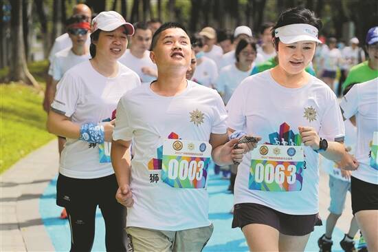 羊城晚报讯 记者林清清报道:轮椅跑者、视障跑者,与数十位手持“陪跑圈”身穿“陪跑”服的志愿者,向着阳光开跑! 今天是全国助残日,一场充满阳光朝气的助残陪跑迷你马拉松在广州生物岛举行。活动由广东狮子会、广州市无障碍健康运动协会、广州市盲人协会举办,今年已是第5年。 “今年增加了很多‘新鲜血液’!有更多视障朋友加入奔跑行列。这也是我们活动的目的之一,希望更多视障跑者通过跑步,既能锻炼身体,又能建立自信,积极融入社会,感受到社会阳光的一面。”广州市无障碍运动协会会长杨俊说。 “表面看来,似乎是我放弃自己的速度,在帮助视障跑者时,其实我每次都从视障跑者身上获得很多力量。”手持“陪跑圈”的陪跑志愿者“二姐”表示,除了协同步频、使用牵引绳等相关训练,陪跑员最重要是“会聊天”!“我们就是他们的眼睛!当我把道路情况、沿途风景一一传达时,往往会发现自己平时容易忽视的风景和感动。而视障跑者的阳光和毅力,也常常激励我。他们都能克服困难坚持训练,我们拥有身体便利的条件,还有什么理由偷懒和退缩?” 对于特殊人群在广州的运动出行,杨俊表示,感受到很多明显改善。日常跑步训练,视障跑者一般都选择地铁出行,无论是无障碍设施还是工作人员的服务意识,都已相当人性化。加上近年来残联及各种助残组织的宣传,市民都会热心有礼地在有需要时提供帮助。“对于视障人士来说,希望公共场所的盲道能设计得更加合理、安全,对损坏或断开的盲道能及时维修。”