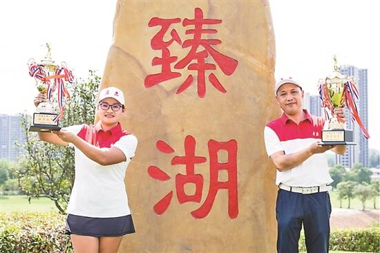 李中球(右)与董建聪分获男女冠军 |