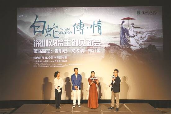 羊城晚报记者 李丽 中国首部4K全景声粤剧电影《白蛇传·情》将于5月20日在国内各大影院全面公映。5月15日至17日,该片继北京点映后,又陆续在深圳、东莞、佛山及广州地区进行超前点映,吸引了大批戏曲爱好者和电影发烧友。点映场座无虚席,年轻观众尤其捧场。放映结束后,他们积极与主创交流,了解这部将传统粤剧文化与现代电影特效完美结合的作品背后的创作故事。 《白蛇传·情》由珠江电影集团、广东粤剧院、佛山文化发展投资管理有限公司共同出品。影片由张险峰执导,国家一级导演莫非担任编剧,国家一级演员、中国戏剧梅花奖和中国文华表演奖获得者曾小敏与国家一级演员文汝清领衔主演,朱红星、王燕飞联合主演。与过去大多数采用实景拍摄的戏曲电影不同,《白蛇传·情》开启了戏曲电影的大片时代,为非物质文化遗产的传承做出了极具价值的尝试。影片既具备粤剧的传统基因,又与当代大众审美对接,不但在国内外获奖无数,更征服了众多新生代观众。 影片自开拍以来便引起各界高度关注,如今的多场提前点映更引发了社交媒体的广泛热议,传统粤剧文化因此成功“出圈”。年轻观众尤其热爱《白蛇传·情》,他们评论道:“实在是美到出圈!”“特效牛!”“就是一部大片!”“喜欢这个声、这个调,虽然是第一次认识粤剧,但我已经被迷住了!”“第一次看戏曲电影,没想到传统粤剧可以拍得这么唯美!” “美到头皮发麻!期待!” 影片也得到了全国影管院线及电影业内人士的支持,有影城经理透露:“预售情况好得出乎意料,需要马上加场了!”
