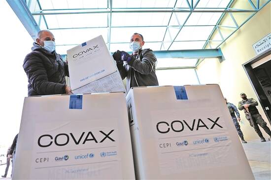 3月17日,巴勒斯坦工作人员搬运通过“新冠肺炎疫苗实施计划(COVAX)”收到的新冠疫苗 新华社发 |