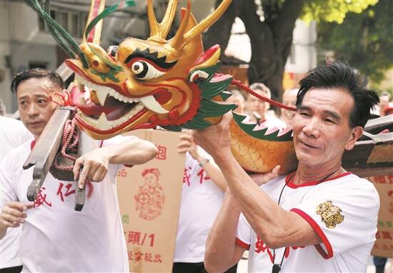 19日,荔湾湖公园内“龙船窦”进行“起龙船”仪式 羊城晚报记者 汤铭明 摄 |