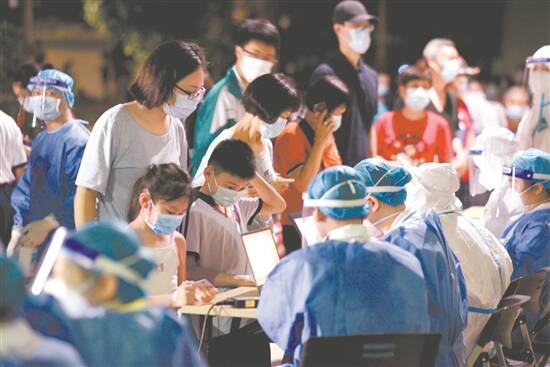 26日,广州海珠区滨江街道某小区居民做核酸检测 羊城晚报记者 宋金峪 摄 |