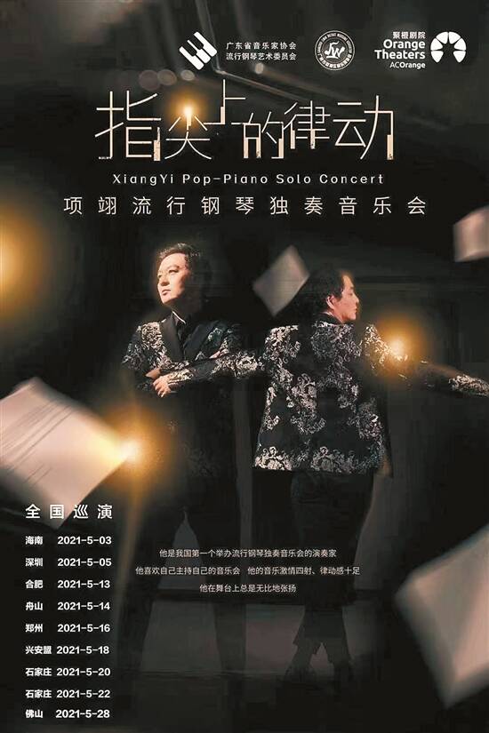 羊城晚报记者 胡广欣 5月3日至5月22日,“指尖上的律动——项翊流行钢琴独奏音乐会”全国巡演顺利完成。在超过半个月的时间里,流行钢琴演奏家项翊从海南出发一路北上,到达深圳、合肥、舟山、日照、郑州、内蒙古兴安盟、石家庄等地,总共举办了9场音乐会。 作为广东省音乐家协会流行钢琴艺术委员会会长,项翊一直致力于普及和推广流行钢琴这一艺术形式。他坦言,此次全国巡演的成功给了他很大信心:“我在广东办过多场流行钢琴音乐会,反响都很好。今年我刻意往全国其他地方走。这趟巡演证明,流行钢琴音乐会在全国都可以卖座。” 半个月跑了半个中国 这是项翊第一次举办个人独奏音乐会的全国巡演,他坦言“没想到反响这么好”。对很多观众而言,流行钢琴是新鲜而陌生的艺术形式,此次巡演让他们第一次现场感受到流行钢琴的魅力。本次巡演中,项翊一个人完成了90分钟的演出,较为完整地展现了原创、弹唱、改编、即兴、跨界五大流行钢琴核心表演形式,项翊既带来《启航》《D调的游戏》《中国摇滚》等原创钢琴曲,也对《离歌》《外面的世界》《说散就散》等多首观众耳熟能详的流行歌曲进行改编和弹唱。值得一提的是,每一场演出的节目单还有细微不同,比如日照场就邀请到AK乐队到场,展现钢琴与摇滚乐队的跨界合作;5月20日举行的郑州场则以爱情为主题,加入《第一次》《我只在乎你》《我的爱对你说》等经典爱情歌曲。 项翊流行钢琴独奏音乐会趣味性十足。他设计了不少互动的环节,让观众倍感新奇:弹奏《魂斗罗》等动漫音乐时,收获了台下不少小观众的尖叫和掌声;盲弹《蜗牛》时,全场观众打开手机闪光灯跟随节奏摇摆,现场俨然一场热闹的流行演唱会。项翊还分享了一件小趣事:“在舟山音乐会结束后的签售环节上,一个观众问我借纸巾,说听完我弹奏的《说散就散》之后一直流泪。能让观众听哭也不是一件容易的事情,由此可见,流行钢琴是一种能引起观众共鸣的艺术形式。” 《我的爱对你说》的原作者、中国音乐家协会流行音乐学会副主席陈洁明高度评价此次巡演:“项翊在半个月时间里完成了9场独奏音乐会,对演奏者的体力和脑力都是极大考验。项翊在此次巡演中不仅零失误,而且赢得了观众热情的掌声,实在难能可贵。” 演出时尚有趣且卖座 在项翊看来,流行钢琴是一门“大众的艺术”,在演出市场上前景广阔。此前,项翊已经通过多场音乐会证明了流行钢琴的商业价值。比如今年2月5日,项翊在广州中山纪念堂举办流行钢琴音乐会,座无虚席;在去年的12月25日,项翊带领团队在苏州办了一场动漫主题音乐会,当晚“安可”三次,观众久久不愿离席。项翊透露:“聚橙网总部了解到这两场音乐会的成功之后主动找我,希望能做一次全国巡演。”此次全国巡演同样取得了不错的票房收益,在石家庄更是连开了两场。 在项翊看来,钢琴不能曲高和寡,必须吸引观众。经过多年的实践,项翊已经打磨出一套成熟的演出经验:“我们在选曲上花了不少心思。每一次演出,我都会观察台下的反应:观众反响最热烈的曲目留下,观众没反应的就删掉。”在他看来,流行钢琴演出要具备三个要素:“首先是流行性,我们选择的大多是大家耳熟能详的歌曲,有亲近感;第二是时尚性,流行钢琴注重改编,我们改编了很多老歌,加入时尚的元素,满足现代观众的耳朵;第三是娱乐性,我们加入很多互动环节,又能听又能玩,观众都很喜欢。” 此次巡演中,项翊也收集了不少观众的反馈:“在石家庄场和郑州场,不少钢琴专业的学生来看了演出,在演出之后的交流中,他们提出可以把古典曲目作流行化改编,我在笔记本上都记着的。观众的想法是最真实的,所以我非常重视。” 除了个人独奏音乐会之外,项翊也尝试开发主题音乐会,目前最成功的是动漫主题专场:“以往市场上的动漫视听音乐会大多采用管弦乐团演奏,我们换个形式,用流行钢琴+电声乐队+歌手表演,给观众带来新鲜感。我们的曲目也很有特色,涵盖《冰雪奇缘》《大鱼》《千与千寻》等不同年代、不同地区的经典动漫歌曲,非常适合亲子一同观看。”据悉,在接下来的六月,项翊将带领团队再出发,进行流行钢琴动漫专场全国巡演。 向全国推广流行钢琴 作为广东省音乐家协会流行钢琴艺术委员会会长,项翊此行还肩负着推广流行钢琴的重任。据悉,此次巡演不仅票价亲民,而且均在网上进行全程直播,让没能购票进场的观众也可以欣赏到演出。项翊坦言:“作为音乐家,我们要有一定的社会责任感,让更多孩子和音乐爱好者接触到流行钢琴这种音乐形式。”他并不担心直播形式会让票房流失:“首先得培养起他们对流行钢琴的兴趣。就好像你喜欢上了刘德华,自然会主动去看他的各种影视作品。当观众爱上流行钢琴之后,他们的购票意愿自然更强。而且流行钢琴花样多、接地气,一定能给观众带来惊喜。” 除了演出外,项翊在合肥、舟山、石家庄等地还举行了公益讲座,向公众普及流行钢琴的基础知识,吸引了不少琴童和家长关注。在舟山,主办方组织了22个琴童与项翊同台演出,让琴童亲身感受流行钢琴的乐趣。“我特地为他们准备了一些四手联弹的乐谱,孩子们两个人一起弹钢琴,都玩得非常开心。”项翊说道。 此次巡演为流行钢琴圈到了不少粉。项翊说:“我发现很多地方的观众虽然不太了