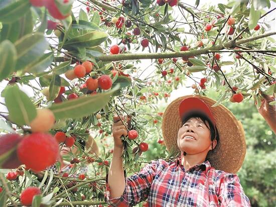 文/图 羊城晚报记者 张文 通讯员 赖金艳 廖向荣 单君 “五月杨梅已满林,初疑一颗值千金。”随着夏日的到来,杨梅也迎来成熟上市的时节。日前记者从有“中国杨梅之乡”美誉的韶关市始兴县获悉,当地3万多亩杨梅逐渐成熟并于5月中下旬大量上市,广受游客和消费者的青睐。在杨梅产业的带动下,更多人在家门口实现劳务增收。 住“白纱帐”提高质量 冷链发往全国各地 近日,记者走访始兴县城南镇一家农场,只见农场里漫山遍野的杨梅树,像一把把凉伞,一粒粒饱满鲜艳、黑宝石似的杨梅就挂在枝头,沉甸甸地压弯了树枝。 除了一颗颗饱满圆润的杨梅,农场里的杨梅树上罩的白色纱帐也格外显眼。农场负责人李应兴介绍说,这些纱帐可以防止虫、鸟、鼠等动物的侵扰和沙尘的侵害,减少农药的施用,又能保证杨梅树的透光通风,确保了杨梅无污染、无公害。这些“住进”纱帐里的杨梅,产量和质量都有所提高,卖价也较为可观,每市斤能卖到30元。 李应兴告诉记者,今年农场种植杨梅700多亩,主要品种为小乌梅和东魁杨梅,小乌梅是早熟品种,五月上旬便开始逐渐上市,东魁杨梅五月中旬才大量上市,“小乌梅颜色更深,味道更浓郁。东魁杨梅个头大、汁水饱满,非常甜!” 刚采摘下来的杨梅,要全部运送到农厂的低温储藏厂房,然后再进行分拣。记者来到农场的分拣处,不少工人正在挑拣打包刚刚新鲜采摘下来的杨梅。而打包好的杨梅则进行冷藏真空包装后放入纸箱中第二次打包好,当天下午就可以冷链快递发往全国各地。 引进良种提高技术 做大做强杨梅产业 始兴县有300多年的杨梅种植历史。为不断扩大始兴杨梅知名度和影响力,始兴今年在城南镇举办“杨梅节”活动。酸甜可口的始兴杨梅吸引了来自全省各地的游客,他们纷纷组团来始兴参加活动、采摘游玩。 据始兴县农业农村局相关负责人介绍,始兴县是国家级生态示范区,得天独厚的种植环境成就了“始兴杨梅”,其品牌品质受到广大消费者青睐,产品远销珠三角等地,供不应求。目前,当地正充分利用地理环境优势,推进杨梅省级现代农业产业园建设,做优做强杨梅产业,不断引进优良品种,提高种植技术,培育规模经营主体。 据了解,截至目前始兴县杨梅种植面积达3万多亩,杨梅年产量2.5万吨,两项数据均排省内首位。始兴杨梅近年来还通过国家绿色食品认证,并先后入选中国农业品牌目录2019年农产品区域公用品牌、“粤字号”2019年县域名特优新农产品区域公用品牌百强,以及2020年第二批全国名特优新农产品。 近年来,始兴县加快杨梅特色产业发展,杨梅产业链条逐步完善,聚集了省市级龙头企业5家,地市级以上示范家庭农场35个、地市级以上示范合作社12个,开发生产杨梅果汁、杨梅红酒等加工产品,初步形成了特色水果加工流通产业集群。而随着采摘季的到来,杨梅产业还将周边的农村劳动力吸纳过来,让更多人在家门口实现劳务增收。