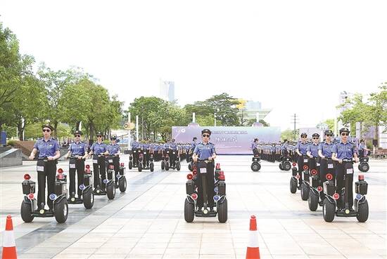 羊城晚报讯 记者秦小辉、王俊伟,通讯员管佳摄影报道:5月27日,东莞市城市管理综合执法局在市中心广场举行东莞玉兰女子城市执法服务队授旗仪式。来自市中心广场和各园区、镇街共34支玉兰女子城市执法服务队集体亮相,意味着东莞城管巾帼队伍正式启航,将持续走进市民群众,围绕巡查服务、宣传教育、柔性执法三大核心职能,以城市“大管家”的暖心服务,让城市更有温度、更有色彩。 授旗仪式现场,玉兰女子城市执法服务队队员们展示了平衡车同步绕桩、对冲绕圈、双向对冲绕桩等十个项目,模拟在狭小复杂的环境下,队员们操作平衡车穿梭其中,考验队员们的操作技术以及对实际场景的准确判断、敏捷的反应和良好的心理素质。从办公室到街头,从幕后到一线,队员们已经完美完成了角色的转变,温柔又坚定地面向市民开展工作。