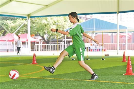 4月12日,广州中考体育开考,一分钟跳绳和足球是“热门”项目 羊城晚报记者 林桂炎 摄 |