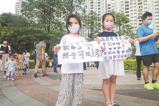 羊城晚报记者 李焕坤 罗仕 6月14日,广州市新冠肺炎防控指挥部同意解除5个区内11个区域的封闭、封控管理措施。本次解除封闭、封控管理的11个区域,涉及海珠、天河、白云、黄埔、番禺5个区。 14日,羊城晚报记者探访部分解除封闭、封控管理的小区。小区居民表示,封闭期间最感谢的是社区和志愿者的付出。记者了解到,这些解封区域接下来还将执行严格的防控措施,暂时禁止外卖员快递员等非小区人员进入。 番禺锦绣半岛东区: 居民共同唱响《歌唱祖国》 14日下午1时许,记者来到锦绣半岛东区看到,居民们戴着口罩陆续下楼,有序走出小区,纷纷用自己的方式来庆祝这一时刻。 有小孩拿着铁盆现场敲击,也有居民随着小区广场上的音乐伴奏,共同唱响《歌唱祖国》《我和我的祖国》,有居民甚至兴奋得在小区广场上跳起了舞。 在此前封闭管理的锦绣半岛东区17栋,两条20米长的巨型条幅显眼地挂在外墙上。“居委会辛苦了”“突击队棒棒哒”……字里行间透露着该栋居民对疫情期间各方关心帮助的感谢。“我们1点解封时挂上去的。这些天,医生、居委会工作人员、物管、志愿者、警察等都辛苦了,为了感谢他们,我们特意做了这个大条幅。”锦绣半岛东区17栋业主陈燕介绍。 根据上级指引,锦绣半岛东区解封后须继续落实7天防控管理。期间,东区住户必须每天通过“穗康”小程序申报个人健康状况,非东区住户(含快递员等)7天防控期内不能进入东区。 海珠区南洲名苑: 解封后最想做的是上班、上学 14日,海珠区南洲名苑居民迎来期待了半个月的解封。 5月26日,南洲名苑海棠阁(A栋、B栋、C栋),执行封闭管理,涉及85户241人;6月1日,南洲名苑其他区域执行封控管理,涉及1293户3237人。 “一开始执行封闭封控管理的时候,还是有一些居民不理解。经过工作人员不断的解释,大家也比较配合,还有居民主动当志愿者,给居家隔离的人员送物资。”南洲名苑管控区临时党支部书记余道启向记者介绍。 14时许,小区正式解封,居民凭身份证办好临时出入证即可出入。居民黄太太表示,得知小区解封后十分开心:“我先生想去上班了,我也希望我在小区开的婴儿游泳馆能早点重新营业!” 就读小学二年级的小锐告诉记者,封控管理期间,她每天只能到阳台呼吸新鲜空气,看一下外面的街道。“解封之后,最想做的是去学校和同学一起玩。还要和医护人员说谢谢,因为他们很辛苦。”小锐说。 解封后的7天内,南洲名苑将执行严格管理规定,只有持有临时出入证的居民才能进出小区。另外,还会继续加强小区内部公共环境的消杀。 海珠中海橡园: 业主为志愿者和物业送上锦旗 6月14日解除封闭管理的11个区域中包括了海珠区沙园街中海橡园(H1-H4栋)。 收到通知后,物业人员协同由街道、社区医院和派出所相关人员组成的三人小组,逐家逐户上门通知住户解封的消息,并让住户签收《解除居家隔离医学观察告知书》。自5月29日至6月14日,中海橡园封闭管理楼栋的住户们共经历了17天封闭居家隔离。 正值端午佳节,小区物业提前购买了一批粽子,派送给封闭隔离的住户们,物业人员在楼栋门口迎接大家下楼。 在楼下,业主自发组织了简短温馨的仪式,大家拉响礼炮,庆祝来之不易的解封。业主们为物业管理处和志愿者们送上锦旗,感谢在封闭居家这段时间,每天为大家派送生活物资的物业工作人员和业主志愿者。 中海橡园物业管理处有关负责人向记者介绍,虽然封闭楼栋已解封,但现场的防疫工作还是不能有丝毫松懈。“接下来,我们对楼栋大堂、电梯、垃圾投放点等重点区域每天4小时一次进行消杀,业主进入小区必须进行测温,所有快递外卖均不能进入小区,业主们需自行到小区门口的临时快递点领取。”