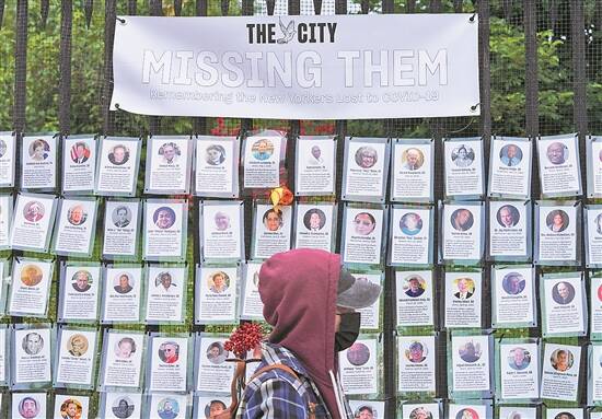 美国约翰斯·霍普金斯大学15日发布的新冠疫情最新统计数据显示,截至美国东部时间15日12时22分(北京时间16日零时22分),美国累计新冠死亡病例超过60万例,达600012例,累计确诊病例33477016例。图为6月14日,行人从美国纽约一处墓地外为新冠死者设立的纪念装置旁走过。 新华社发
