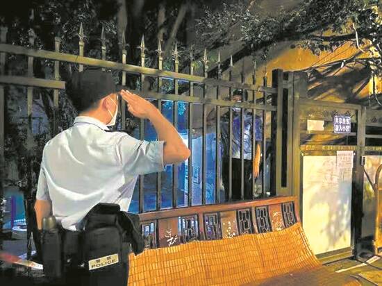 新警马骏与同是警察的父亲隔栏相望相互敬礼 广州市公安局供图 |