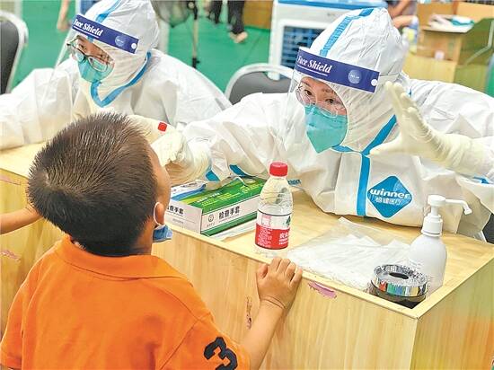 羊城晚报记者 文聪 21日,东莞对全市(除长安、虎门、大岭山、麻涌外)常住人口、来莞人员开展全员核酸检测。炎热的天气,医护人员和公安民警们各司其职,尽其所能,奋战在抗击疫情的第一线。 医护人员: 用行动诠释担当与使命 21日凌晨,南方医科大学附属东莞医院(东莞市人民医院)接到核酸检测任务,迅速召集250名医护人员。6时30分,支援队伍出发支援万江街道核酸检测采样工作,深入到各学校、小区、厂区为市民进行采样。 接连数日,东莞市中医院连续派员支援南城街道、长安镇和麻涌镇开展大规模核酸采样工作。21日不到8时,该院又紧急集结50名医护人员前往东城街道东泰社区。支援队伍中,有科主任、护士长,有“90后”“00后”年轻骨干,也有多次坚守在疫情防控岗位的成员。 除了三甲医院,东莞的各镇街医院和社卫机构也在为战疫全力以赴。21日6时30分,望牛墩医院的60名医务人员就已赶往镇内各核酸检测点。他们中的不少人是当天2时30分才完成支援麻涌镇核酸检测任务,稍作休息,便继续坐上了核酸检测的大巴。 在厚街医院支援沙田镇、万江街道核酸检测以及厚街镇大规模核酸检测筛查中,都能看到卫家民。他是烧伤科医师,也是该院第三党支部的一名党员。每次抗疫,他总是科室里第一个报名的,“危险肯定是有的,但我是党员,就应该做党员应该做的事情。” “你们是最可爱的人!”“岁月静好,是你们在为我们负重前行,你们是最温暖的阳光,照亮了整个校园。”这是东城实验中学师生们对医护人员表达的心声。当天,东莞市妇幼保健院8名医护人员在两个多小时内,完成了3800多名师生的核酸检测。学生们自发画画、赠送鲜花表达感激之情。 公安民警: 暖心战疫维护现场秩序 21日清晨,东莞交警沙田大队全员投入,与沙田义警和志愿者一起全力守护检测点。7时许,各人员按照安排奔赴全镇各村、社区核酸检测点,迅速投入工作岗位。在上学、上班高峰时段,全力做好车流、人流的交通疏导,确保检测点周边路段停车秩序良好,保证群众有序、放心地完成核酸检测。在核酸检测过程中,因个别检测物资调配出现紧张,为使各物资保障到位,现场铁骑担负起临时转运工作。 21日上午,寮步镇文康一街核酸检测点,一位老人身体不适晕倒在地,现场民警和工作人员见状及时把老人扶到路边休息,给老人喂水。待其清醒后,背着老人通过绿色通道直到检测点,耐心安抚老人,并协调医务人员快速进行检测。 塘厦镇内设置了45个核酸检测点。各个检测队伍中,公安民警维护秩序与服务群众的场景打动了无数人。队伍前面维持秩序的队员,身上的汗水湿了又干,干了又湿;见到拄着拐行走不便的人,立即搀扶进场,开辟绿色通道;对于不会扫“葵花码”的群众,义警队员们不厌其烦地进行指导。塘厦交警大队叶浩球副大队长在林村广场核酸检测点发现一名群众身体不适,马上上前搀扶并调用警车将群众送往医院。