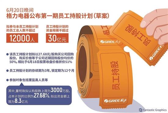 羊城晚报记者 王丹阳 继一周前董明珠表示对格力员工“一人一房”承诺“即将送达”后,有关格力“人均25万元”的“超级福利”再次引发外界关注,格力电器(000651)公告了第一期员工持股计划,资金规模不超过30亿元。 持股计划引发外界争议 6月20日晚,格力电器(000651)公告的第一期员工持股计划(草案)显示,格力电器当期员工持股计划的资金规模不超过30亿元。拟参与本次员工持股计划的员工总人数不超过12000人,包括公司董事(不含独立董事)、监事、高级管理人员共计8人。此次员工持股计划股票来源为格力电器回购专用账户中已回购的股份,股票规模不超过1.084亿股,占格力电器当前总股本的1.8%。格力电器全部有效的员工持股计划所持有的公司股票总数不超过公司股本总额的10%,单个员工所获股份不超过公司股本总额的1%。 但该员工持股计划也引发了外界争议,主要有两点。一是此次格力员工持股计划的价格“打五折”。根据公告,参与本次持股计划员工购买公司回购股份的价格为27.68元/股。而格力电器股价在上周五收报53.68元,上述员工持股价约为现价的50%,相当于打五折。此次拟出资上限为30亿元,若顶格全部认购,相当于白送员工近30亿元,按12000人来算,平均每人赚25万元。 同时公告显示的公司业绩考核指标为:本次格力电器员工持股计划分两期将对应的权益归属至员工持股计划各持有人,每期可归属的比例最高为50%。第一个归属期,2021年净利润较2020年增长不低于10%;第二个归属期,2022年净利润较2020年增长不低于20%。 有投资者认为,2020年由于疫情原因,格力电器当年业绩基数很低,以2020年业绩为基准来设置员工持股激发条件过于宽松。此时员工持股计划股价以50%的行权可以无风险套利。 二是格力电器董事长、总裁董明珠在本次员工持股计划中,拟认购股数上限为3000万股,拟出资金额上限约为8.30亿元,占本次员工持股计划的27.68%。同时,其他六个董事、副总裁认购60万股。也就是说,如格力电器股价稳定在现有价位,董明珠顶格认购上述员工持股计划,入手浮盈就达约8亿元。 有投资者认为,董明珠个人持股高达3000万股,在员工持股计划中占比过高。也有投资者认为,合法合规激励管理层和员工无可厚非。 而格力电器表示,公司现金流充足,财务状况良好,不会因实施本员工持股计划对公司日常经营产生重大不利影响,且未损害公司及全体股东利益。 已发三次股份回购公告 自去年4月以来,格力电器已发布了三次股份回购公告,均表示将用于实施公司股权激励或员工持股计划。 其中,去年格力电器前两次回购累计动用资金达到120亿元,购回总计2.09亿股,占公司总股本的3.48%,可以完全覆盖此次员工持股计划。而在今年5月26日晚,格力电器披露了第三次回购计划,被称为“A股史上最大的回购”,格力电器拟以75亿-150亿元回购股份,回购股份价格不超过70元/股。 6月21日开盘,格力电器大幅低开。截至6月21日,格力电器收报51.99元,跌4.79%,股价创今年来新低,总市值为3075亿元。另一家电巨头美的集团市值收报72元,跌2.44%,总市值为5073亿元。两者市值差距已拉开近2000亿元。