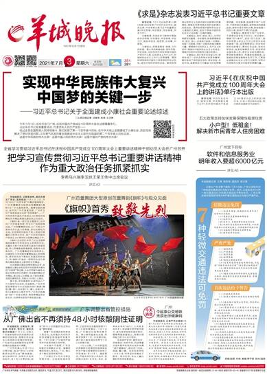 1957年10月1日创刊 2021年7月3日 星期六 辛丑年五月廿四 报料热线:(020)114转羊城晚报报料、(020)87776887 Q友报料:87776887