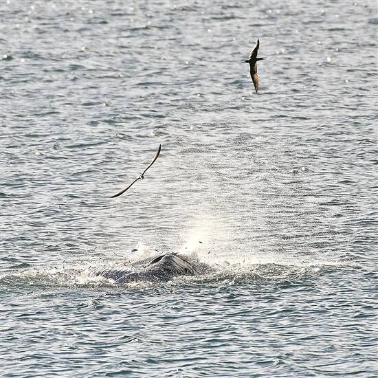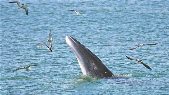 7月5日下午,记者来到深圳大鹏湾鲨鱼涌海域,从下午3时到晚上7时,记录拍摄到布氏鲸在这一带海域游动捕食的情况 羊城晚报记者 王磊 摄影报道 |