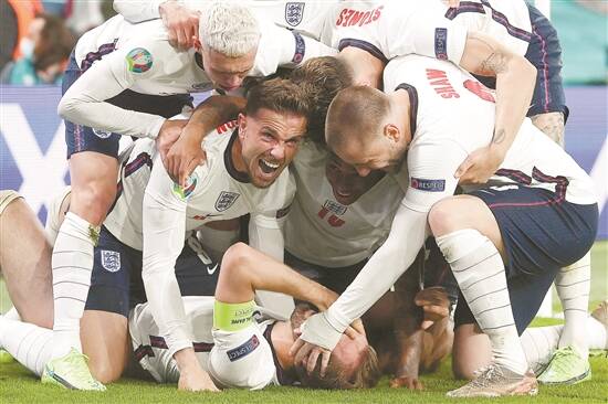欧洲杯第二场半决赛今晨在伦敦温布利球场上演,英格兰主场经过加时赛以2比1逆转险胜丹麦,首次打进欧洲杯决赛。决赛时间是7月12日凌晨3时,英格兰在温布利球场迎战意大利。 致敬埃里克森 埃里克森既是丹麦当家球星,又与英格兰队长凯恩一起在热刺效力多年,他们一起带领热刺在2018-2019赛季打进欧冠决赛。本场比赛开始前,凯恩代表英格兰把一件印有埃里克森名字的英格兰球衣赠送给丹麦队长克亚尔,双方队长拿着球衣合影留念。 在欧洲杯首轮小组赛,埃里克森在比赛中休克,然后确诊心脏病,成功进行了手术之后还在休养。丹麦最初使用的阵型是4-2-3-1,桑普多利亚边锋达姆斯高是一名替补,在首轮小组赛根本没有获得出场机会。埃里克森患病之后,丹麦主帅尤尔曼把阵型改成3-4-3,小将达姆斯高变成主力并且大放异彩,他7月3日才刚满21岁。 直接任意球是埃里克森的绝招之一,达姆斯高此役用直接任意球向老大哥致敬。丹麦在第30分钟获得直接任意球,英格兰排出的人墙很严密,1.88米的凯恩、1.94米的中卫马奎尔和1.88米的中卫斯通斯参与排人墙,后腰菲利普斯躺在人墙后面防止打地滚球。 达姆斯高艺高人胆大,他罚出一记电梯球,凯恩和马奎尔虽然起跳,但皮球还是越过他们的头顶,随后发生急坠直接入网。英格兰门将皮克福德鞭长莫及,丹麦以1比0领先。这是本届欧洲杯的第一个直接任意球得分,也打破了英格兰在本届欧洲杯的不失球纪录。实际上,自从4月1日2比1战胜波兰的世界杯预选赛之后,这是英格兰的第一个失球。 点球存两大争议 凯恩很冷静,他用双手指着自己的头示意队友们要冷静下来。英格兰很快就把比分扳平,凯恩第39分钟送出直传,右边锋萨卡传中找斯特林,克亚尔提前出脚准备解围时不慎自摆乌龙。 这是本届欧洲杯的第11个乌龙球,“乌龙君”不仅在本届欧洲杯射手榜遥遥领先,还比过去历届欧洲杯的乌龙球之和多两个。乌龙球增多,除了因为边路传中次数增加和质量提高,还因为对进球的认定更加严格。例如在西班牙对瑞士的1/4决赛,西班牙左后卫阿尔巴射门造成瑞士中场扎卡里亚自摆乌龙,以前可能会认定为阿尔巴的进球,但现在认定为扎卡里亚的乌龙球。 两支球队在下半场大打对攻,可是都无力改写比分,比赛被拖入加时赛。英格兰在第102分钟获得一个有争议的点球,斯特林右路突入禁区在梅勒和延森的夹击下倒地,荷兰主裁判马克列指向点球点,确认点球判罚有效,凯恩操刀主罚被门将小舒梅切尔扑出,凯恩迅速跟进补射入网。 前阿森纳名帅温格对点球判罚提出质疑:“这不是点球,我不理解为什么在这种情况下,VAR没有让主裁判去场边仔细看回放,他必须完全确认才行。” 除了斯特林有假摔嫌疑,在这次突破过程中,他的行进线路附近有第二个足球,这直接影响了丹麦球员的防守判断。场上出现两个足球,主裁判应该吹停比赛。丹麦替补球员提醒裁判组,但是被无视,英格兰就这样在混乱中实现了首次打进欧洲杯决赛的历史性突破。 羊城晚报记者 刘毅