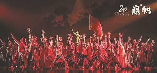 □刘茉琳 7月1日,伴随着《国际歌》的旋律,广州芭蕾舞团王舸导演的革命历史题材舞剧《旗帜》在广州大剧院展演,这部大气、丰满、优美的舞剧再现了1927年广州起义的历史,以真实的革命人物张太雷、叶剑英、叶挺、游曦为人物原型,辅以张太雷的母亲和妻子、游曦的恋人肖飞、卖花小姑娘,以及一众浴血奋战的共产党人与革命群众的形象,呈现了一段感人至深的革命往事。 《旗帜》是一部典型的情节舞剧,故事讲述得如电影般流畅。舞剧选择的视角是一位饱经风霜的广州老太太,舞台转场后,当年的她还是一位穿着红色上衣阔腿裤的卖花小姑娘,以她的回忆为线索实现了从个体记忆到集体记忆的无缝转换。舞剧中革命往事的主场则以张太雷为主线,辅之以女性革命者游曦的线索,一刚一柔,相得益彰。张太雷是广州起义的主要领导人,也是中国共产党历史上第一个牺牲在战斗第一线的中央委员。剧中女兵班长率女兵坚守天字码头,她们没有及时接到撤退命令,高举旗帜战斗到最后。 那一页历史是悲壮的。呈现在今天的舞台上,《旗帜》结构清晰易懂,舞美简洁朴素,音乐华丽大气,每一幕都有意识地还原油画式的场景,舞台从布景到演员服饰都以雄浑凝重为主要审美,点缀以胸前的红色领巾。舞蹈形式多样、语汇丰富,张太雷与叶剑英、叶挺祭奠牺牲战友的三人舞,张太雷牺牲后魂归家乡看望母亲与妻子的三人舞,游曦与恋人的双人舞,讨论战争走向的会议群舞,战斗中的军队群舞,一幕幕无不让人印象深刻。 舞蹈艺术是文化精神最为生动的载体之一,是冲突与和谐的对话,也是崇高与优美的结合,用肢体的动作呈现具象的感情,也呈现抽象的信仰,呈现革命者的情思与追求。舞台上的主线是三天两夜的广州起义,同时通过张太雷的“魂穿”,让我们看到英雄也是平常人。他在战斗最艰难的时刻想起了常州家乡的母亲与妻子;在自己不幸遭遇枪击身亡时,“魂穿”回乡,看到母亲与妻子悲痛欲绝,却无从安慰。为人子,为人夫,是他身上的“小爱”,作为革命者,作为共产党员,则是他身上的“大爱”。作为革命者,他有英雄魂,他跳起来特别轻盈,那是理想的飞翔;他落下来特别沉稳,那是革命的厚重。牺牲之后他也“魂穿”到指挥部,希望唤醒意志消沉的战友,最终部队转移,保留革命火种。整部舞剧展现的人物是多面的,他们身上有亲情、友情、爱情,但这些都被内化为革命情义与革命力量,这是那一辈共产党人的人性美与信仰美。 谈到芭蕾舞剧,人们往往想到1960年代的《白毛女》《红色娘子军》,但其实可以上溯到20世纪三四十年代,在吴晓邦现实主义舞蹈的概念指导下诞生了《义勇军进行曲》《春的消息》等经典剧目,与之同时代的著名舞蹈家戴爱莲和梁伦等人也将舞蹈创作与国家前途命运联系起来,国外芭蕾舞中的“仙女”们一步步转换成中华民族的“女战士”。同时,《旗帜》也继承了红色芭蕾舞剧中的一些基本编舞语言,比如战士的战斗动作,女兵的生活场景,还有紧握的拳头这一意象,那是坚守团结绝不动摇的革命信心。 这是舞台上关于历史的再现。张太雷与游曦,29岁与19岁,多么美好的年龄。当年旗帜升起的地方,如今盛世繁华;当年浴血奋战的地方,如今和平安详。今天,在旗帜升起的地方,那关于革命的故事,有了最响亮的回声。
