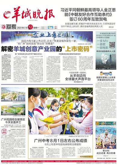 1957年10月1日创刊 2021年7月12日星期一 辛丑年六月初三 责编/林丽爱 袁婧 美编/范英兰 校对/温瀚 报料热线:(020)114转羊城晚报报料、(02